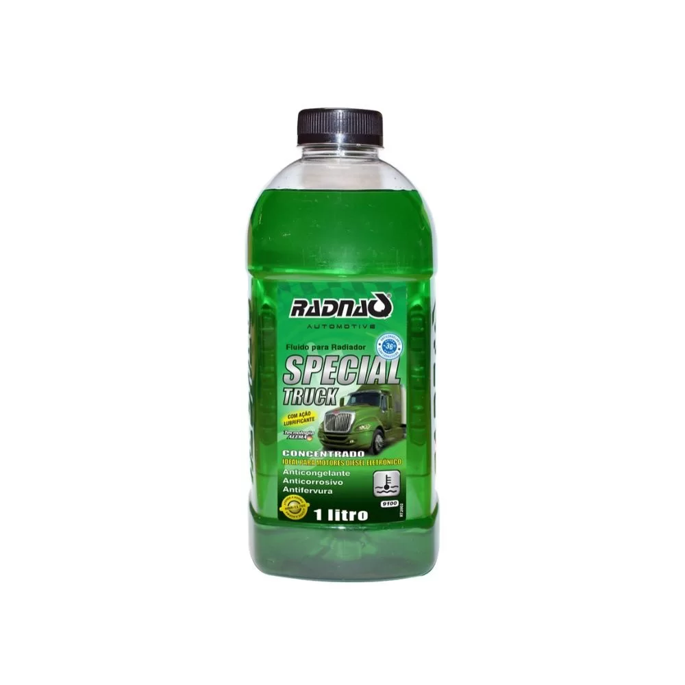 O Fluido para Radiador Special Truck foi desenvolvido para o sistema de arrefecimento dos motores diesel eletrônicos. Atua no sistema protegendo contra os efeitos da corrosão e da cavitação, eleva o ponto de ebulição da água e protege contra o congelamento até a temperatura de 36 °C. Lubrifica a bomba dágua e promove um maior tempo de vida útil a todos os componentes do sistema de arrefecimento.
