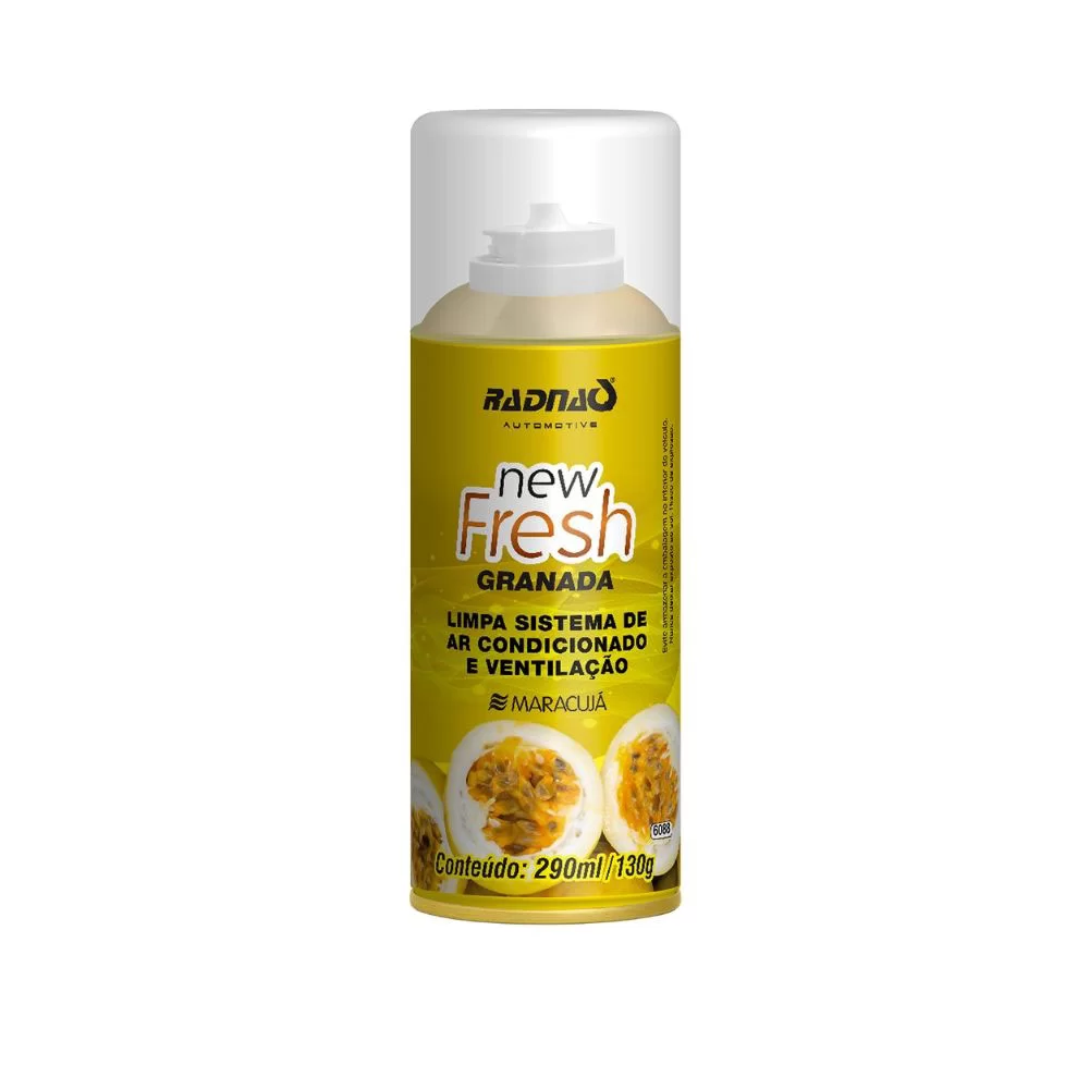 O Limpa Ar Condicionado New Fresh Granada é um produto em aerossol desenvolvido para a limpeza no sistema de ar condicionado e ventilação. Pode ser utilizado no interior de automóveis, ônibus, caminhões ou qualquer outro ambiente que necessite de limpeza. Após a aplicação, secar as partes umedecidas como: carpete, partes internas (painel), bancos e etc.. Para uma perfeita limpeza e total garantia do produto, antes da aplicação é necessário a substituição do filtro da cabine.