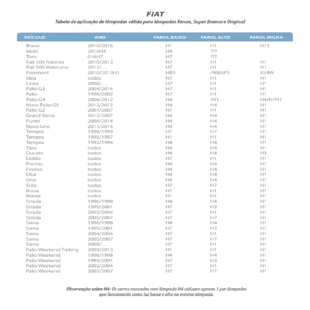 Aplicação para farol baixo nos seguintes carros: