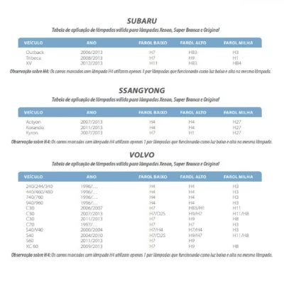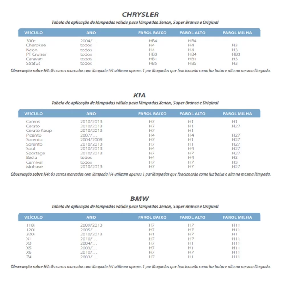 Aplicação para farol alto nos seguintes carros: