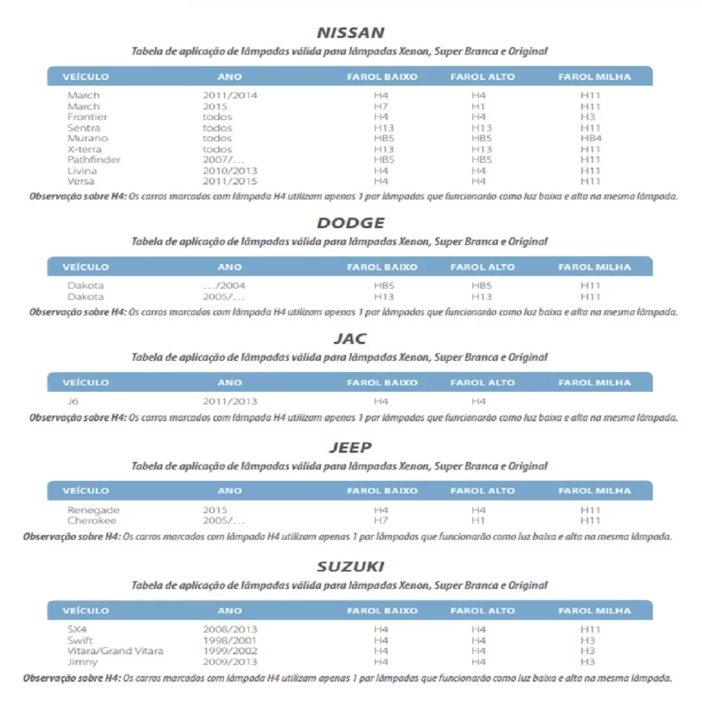 Lâmpadas Xênon na temperatura de cor 6000K tonalidade Extremamente Branca, este kit proporcionará uma intensidade de luminosidade com alcance até três vezes maior, bastando você verificar qual o encaixe correto (modelo de lâmpada) do seu veículo e escolher o kit que além de mais eficiência na iluminação deixa o carro com um visual muito mais arrojado e esportivo.