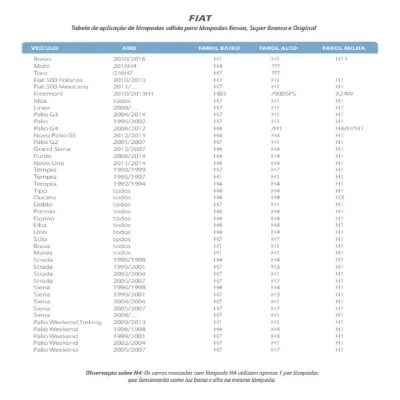 Aplicação para farol baixo nos seguintes carros: