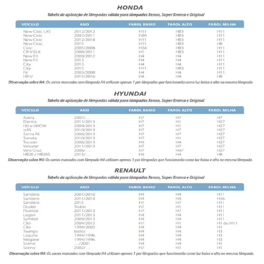Lâmpadas Xênon na temperatura de cor 6000K tonalidade Extremamente Branca, este kit proporcionará uma intensidade de luminosidade com alcance até três vezes maior, bastando você verificar qual o encaixe correto (modelo de lâmpada) do seu veículo e escolher o kit que além de mais eficiência na iluminação deixa o carro com um visual muito mais arrojado e esportivo.