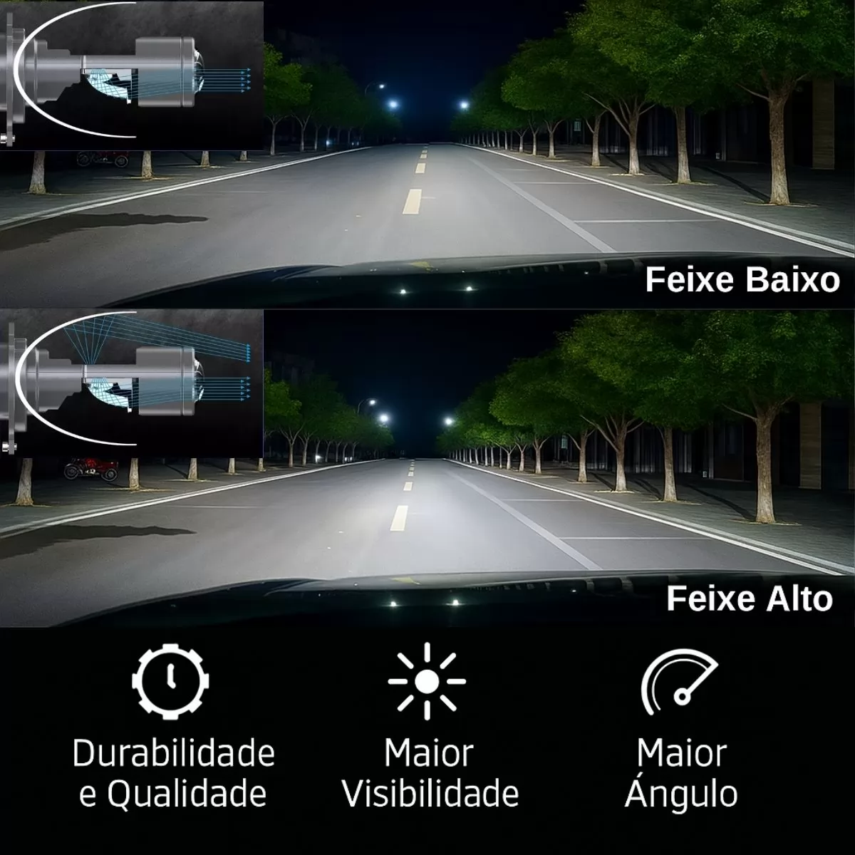ILUMINAÇÃO POTENTE E DIRECIONADA: Ideal para faróis auxiliares, de neblina ou milha, proporcionando visibilidade superior em condições adversas.