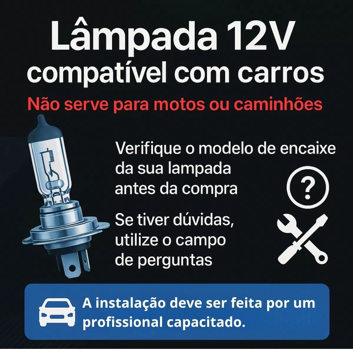 Ideal para substituir as antigas lâmpadas halógenas em faróis de neblina, milha ou auxiliares, especialmente em veículos com pouco espaço no farol. Consulte o manual ou verifique o encaixe original para garantir a compatibilidade.